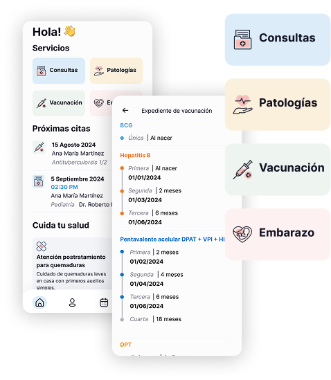 Nuestra app facilita el seguimiento de la vacunación, brindando acceso rápido a los registros, enviando recordatorios automáticos y ayudando a proteger la salud familiar al prevenir enfermedades.